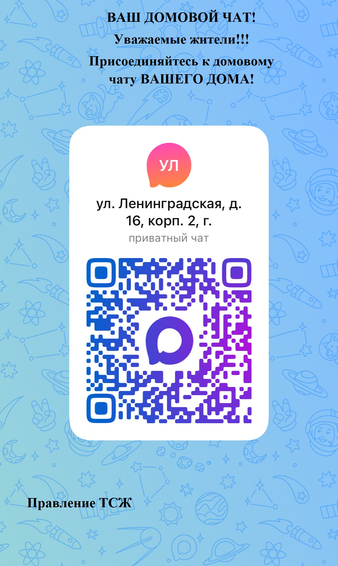 QR коды на общедомовые чаты д.16/223.01.2026